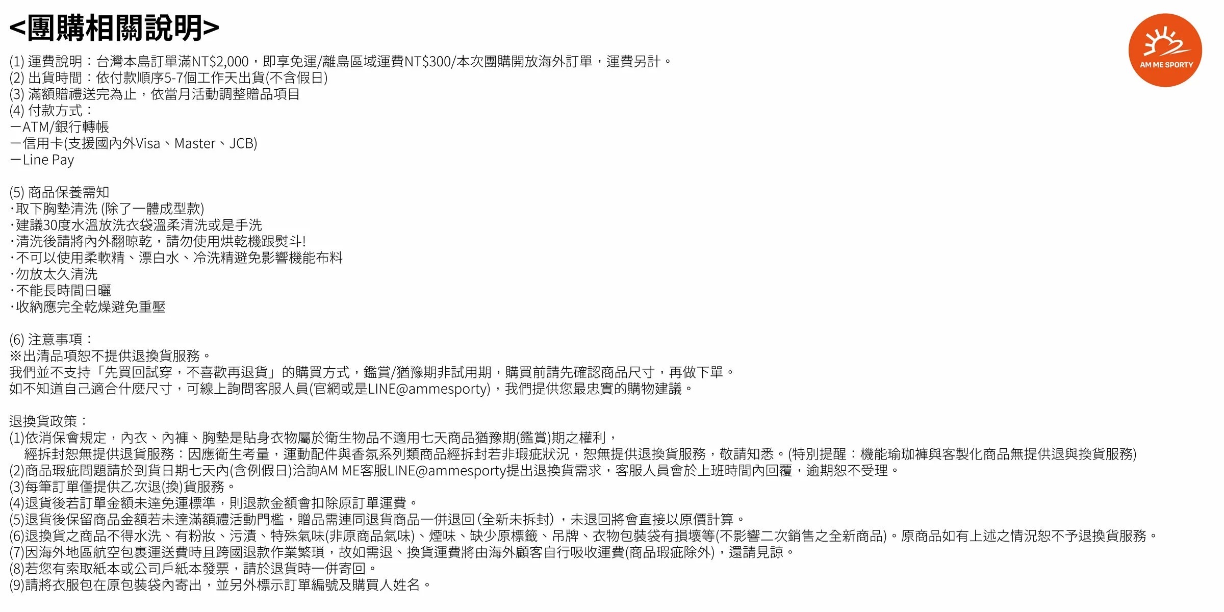 Line ID:@ammesporty (記得打@唷)