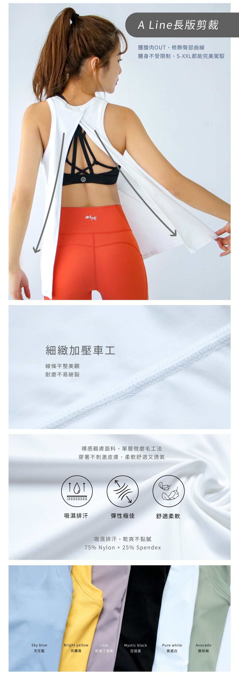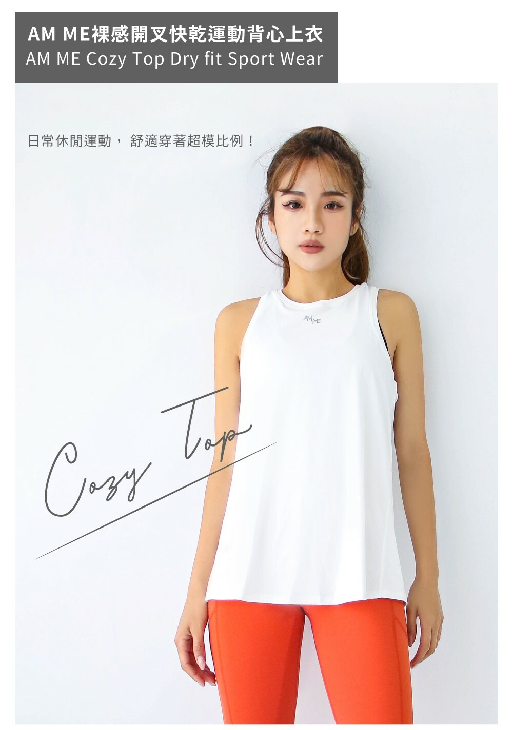 AM ME Cozy Top 裸感開叉快乾運動背心上衣