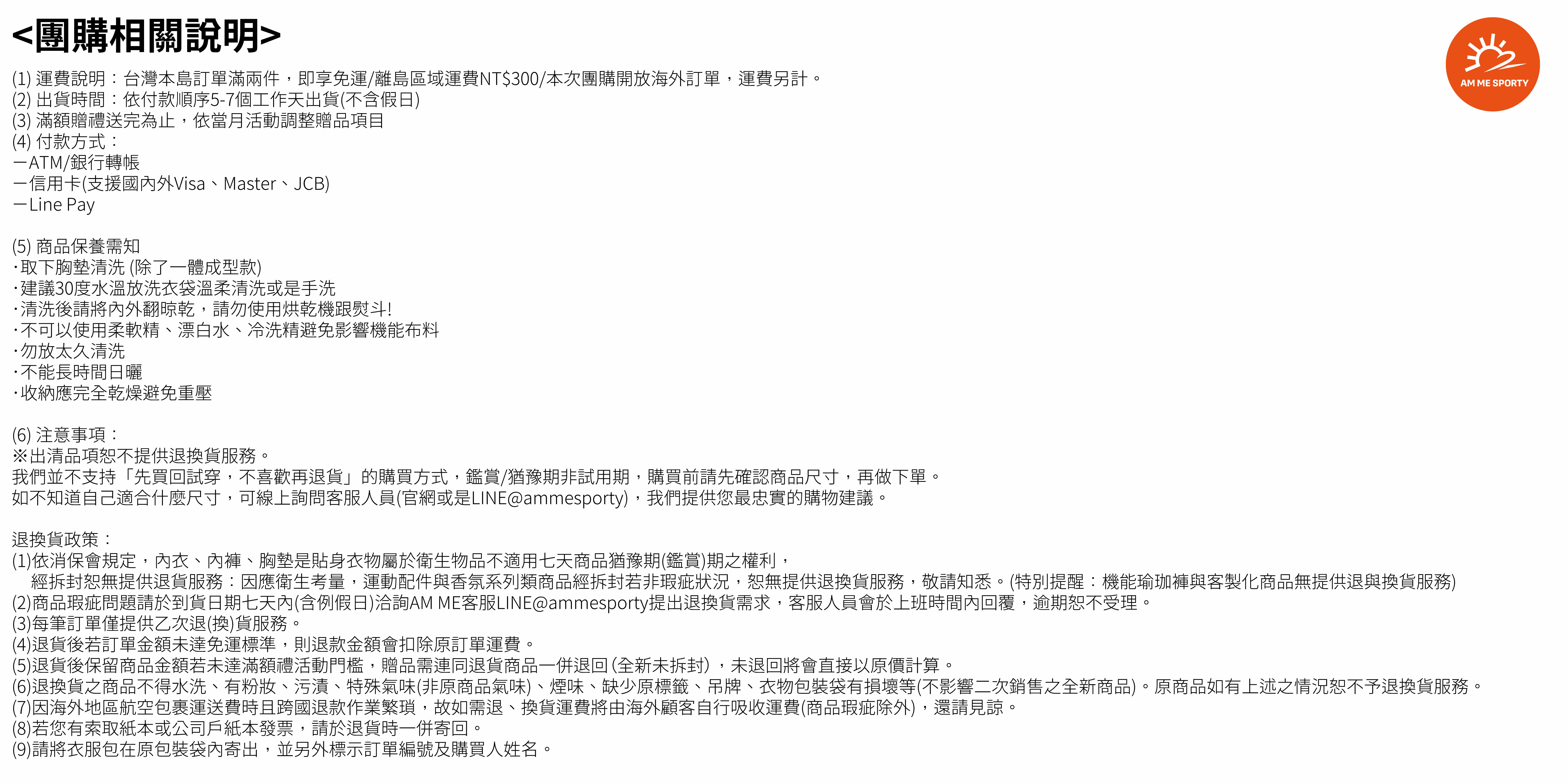Line ID:@ammesporty (記得打@唷)